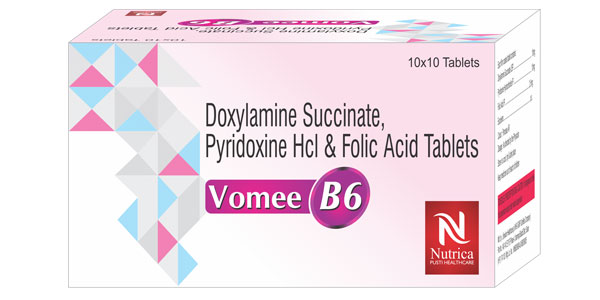 Vomee – B6 is a medication used to manage vomiting during pregnancy. It contains Doxylamine , Pyridoxine and folic acid. It is very safe medication which is used to manage morning sickness during pregnancy. Vomee- B6 should be taken as per doctor advice .